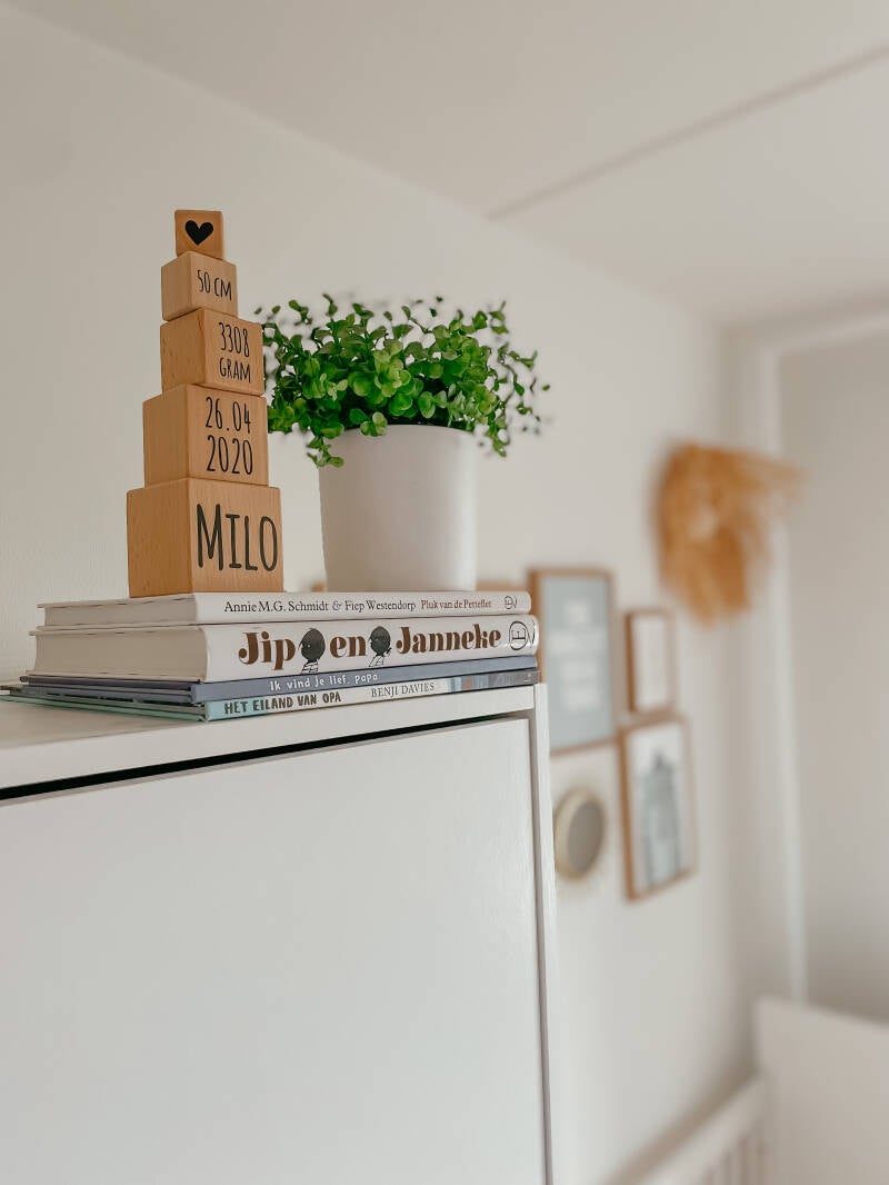 Ook meer praktische cadeaus voor op de babykamer vind je bij Het Blije Snoetje terug. Zakjes speciaal voor de speentjes, speelgoed of alle geboortekaartjes (hoe handig?) Maar ook de maathangers voor in de kast zijn superslim. Want met al die (nieuwe) babyspullen is het fijn om wat structuur aan te brengen. Maakt het kamertje overzichtelijk en spullen makkelijk weer terug te vinden. Uitermate geschikt dus voor je post zwangerschapsbrein. Het Blije Snoetje snapt dat.