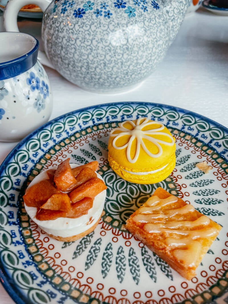 Kinderen krijgen hier een eigen kinder-high-tea! Inclusief eigen 'thee'. De elegante en poppige theepot voor de meisjes was gevuld met siroop. Geniaal! De dames waren helemaal trots op hun eigen etagère. Pannenkoekjes en brownie-lolly's zijn favoriet. Maar de grootste hit is zelf 'thee' inschenken. Dat is toch ook super schattig? En, geheel in thema, is de siroop zelfs huisgemaakt!
